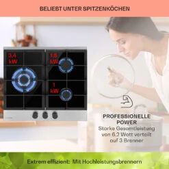 Alchemist 3 Gaskochfeld 3-flammig Aluminium-Brenner Glaskeramik
