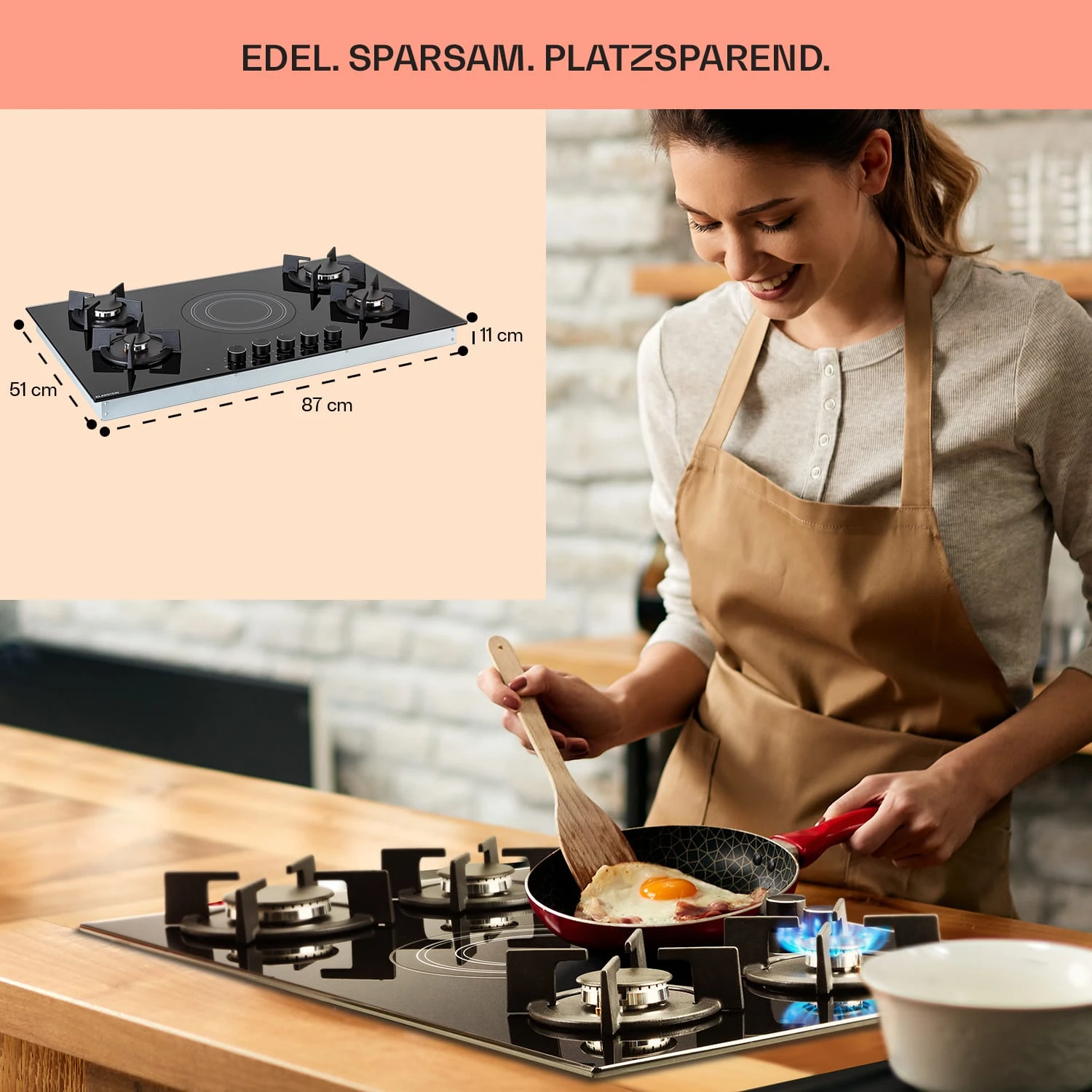 MultiChef 5 Kombi-Gaskochfeld Gas/Glaskeramik 5 Zonen
