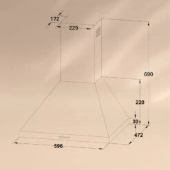 - Maße Dunstabzugshaube (ohne Kaminverblendung): ca. 60 x 30 x 48 cm (BxHxT)